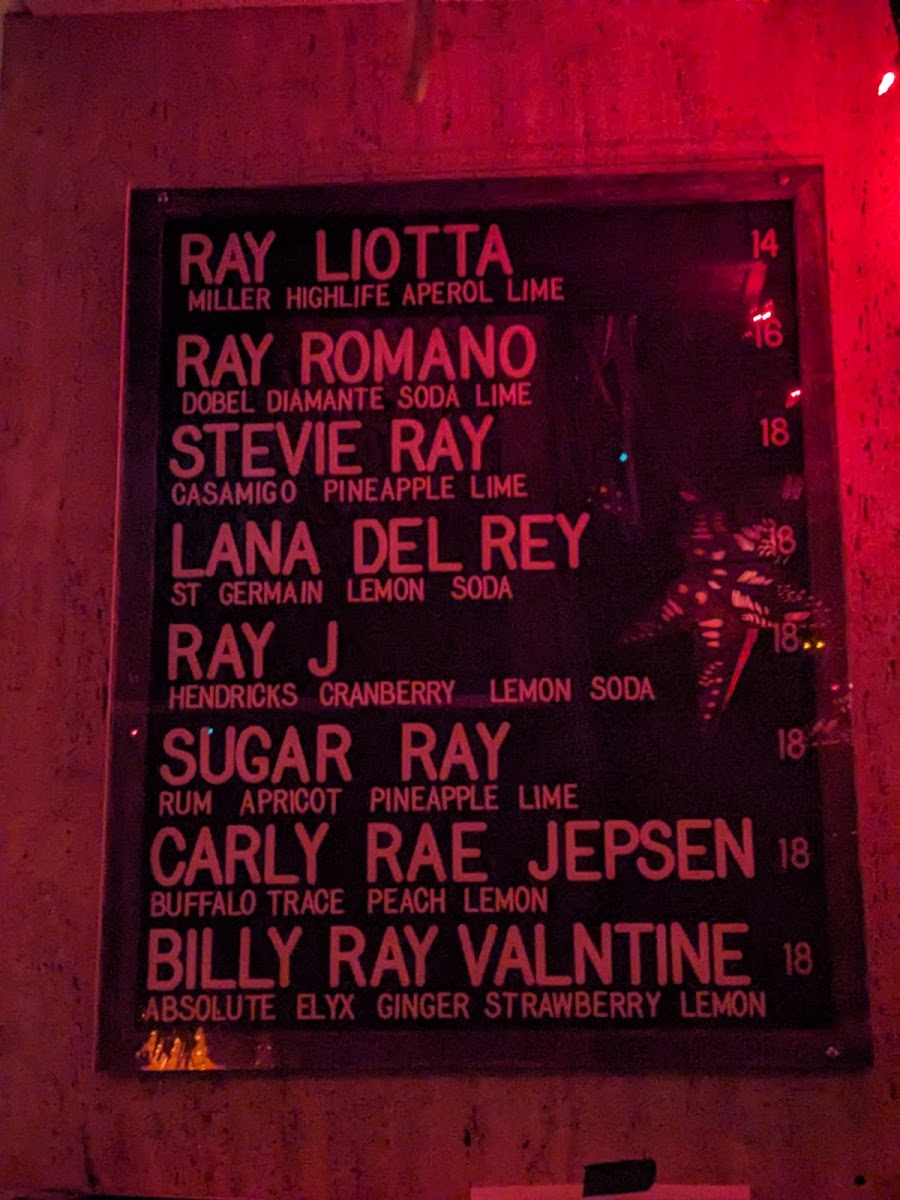 The menu at Ray’s reflects its easygoing yet thoughtfully curated bar vibe—offering a selection that balances classic and creative cocktails with straightforward, satisfying bar bites. The focus is on quality and approachability, making it a spot where you can unwind during a low-key weeknight or dive into the buzz of a lively weekend crowd.